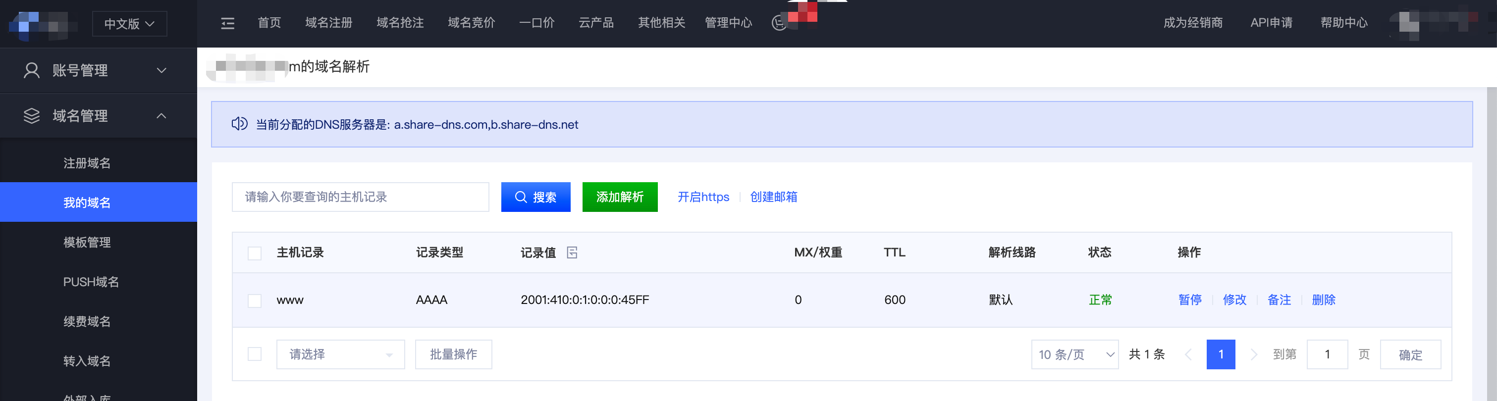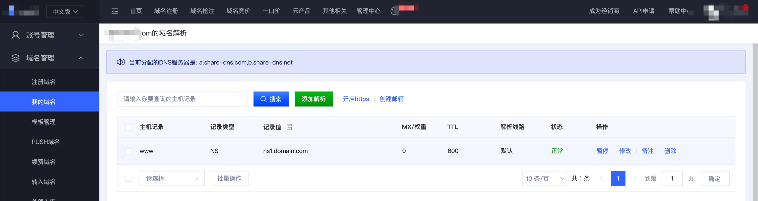 一、只有在本站管理的域名且使用本站默认DNS,才能在本站解析,步骤如下: