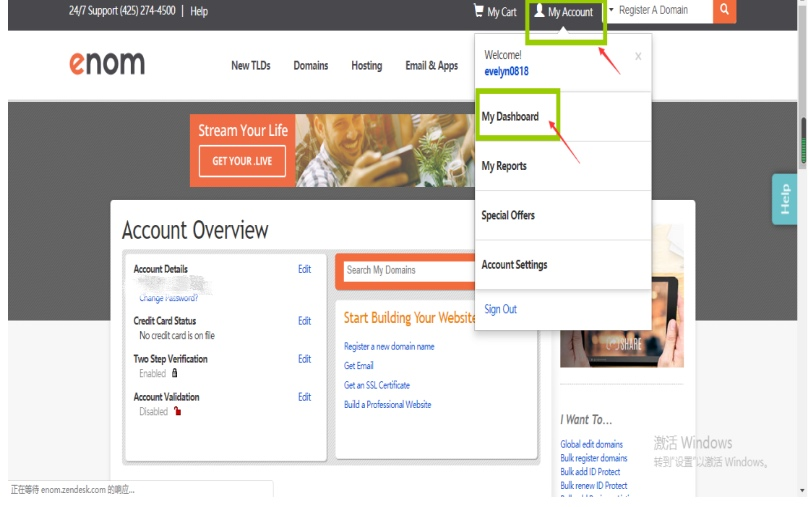 1.登陆后,点击【My Account】,在下拉菜单栏找到并点击【My Dashboard】;