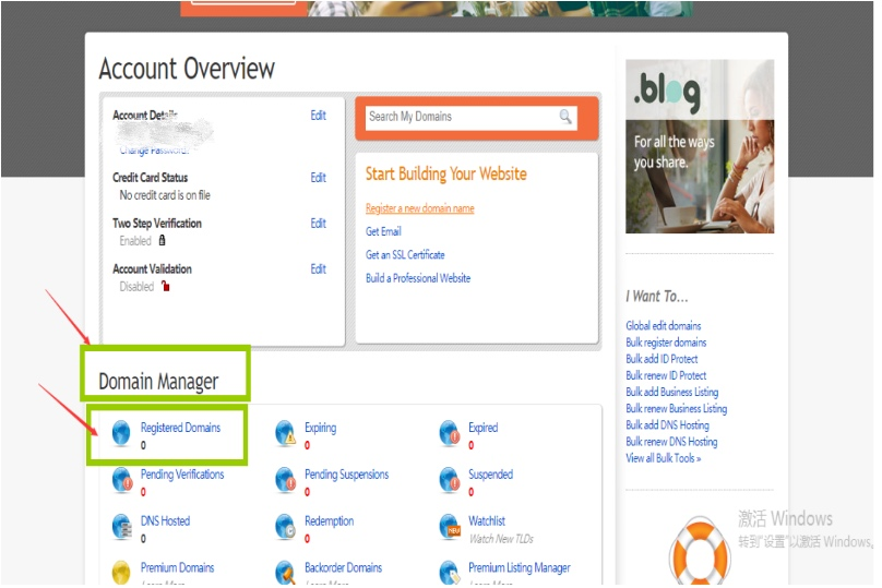 2.在页面找到【Domain Manager】,然后点击下方的【Registered Domains】;