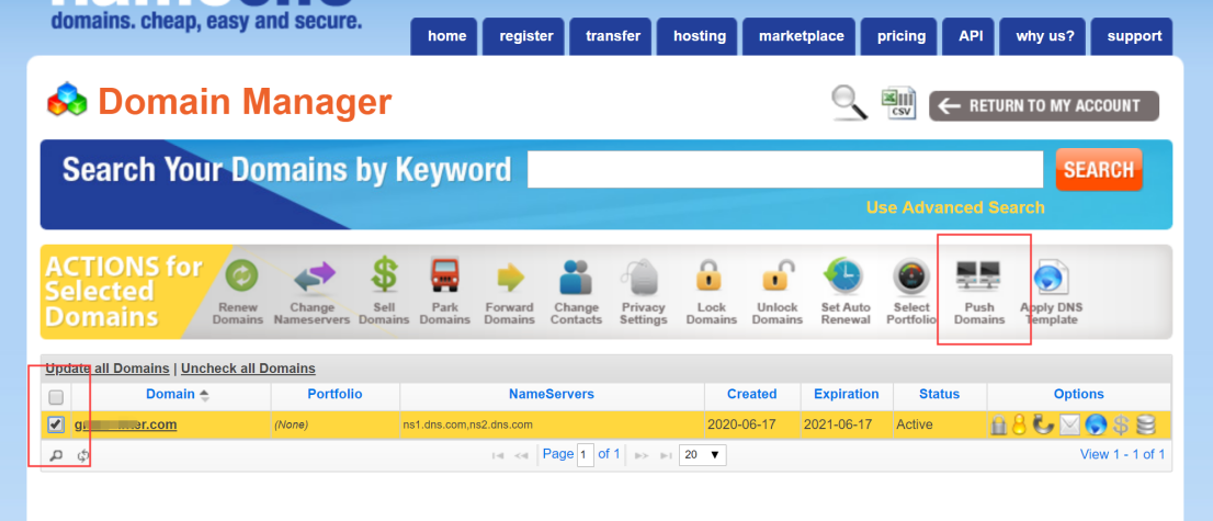 2.勾选域名,点击【Push Domains】选项如下图所示: