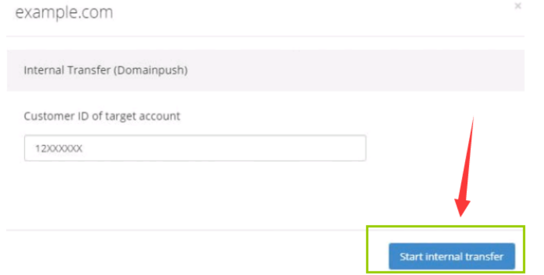 3.填写Gname提供的账户,点击【Start internal transfer】,然后在Gname提交入库即可。
