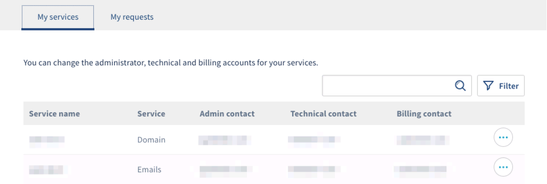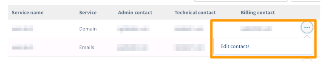 2.进入【Contact】页面后,选择【My services】,然后单击要修改的域名右侧的【...】。